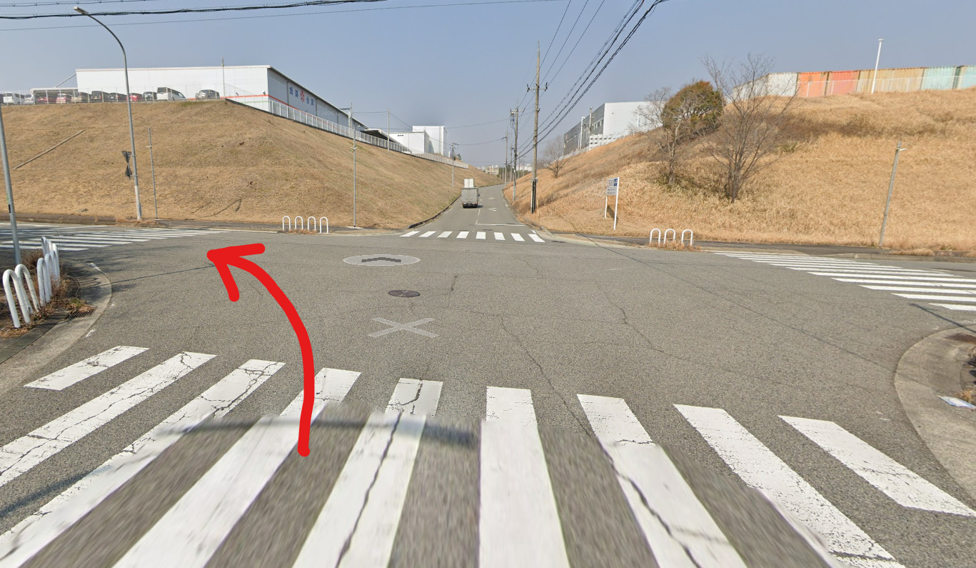 めんたいパーク様入り口前を東に進む